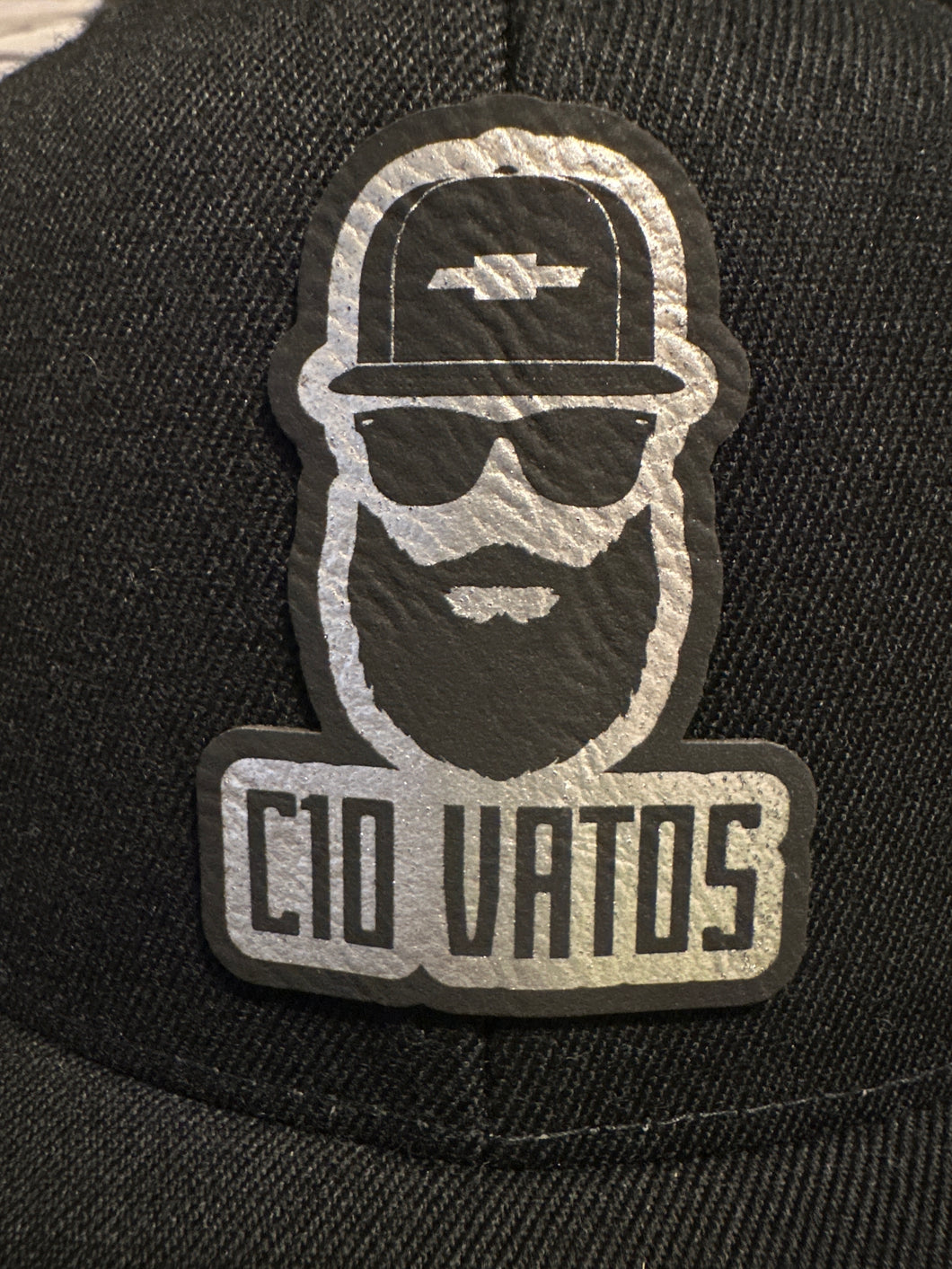 210 Fitted black hat with leather patch C10 Vatos logo patch.